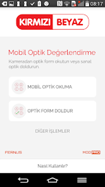 Kırmızı Beyaz Optik Okuma, Android platformunda sunulan bir eğitim uygulamasıdır. Bu uygulama, kullanıcıların optik formları hızlı bir şekilde değerlendirmesine olanak tanır. Kullanıcılar, optik formlarını düz bir zemin üzerine yerleştirip, mobil optik değerlendirme uygulamasını açarak sonuçlarını birkaç saniye içinde görebilirler. Uygulama, eğitim sürecini hızlandırmak ve verimliliği artırmak amacıyla tasarlanmıştır.